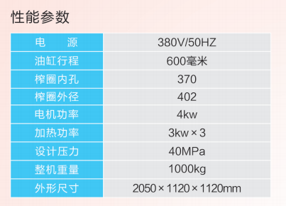 1、静态压榨法,采用液压传动系统,压力均匀且稳定,能充分挤压油料中的油脂;